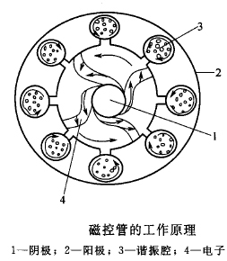 實際過程中,不是100%的電子都能交出直流能量轉(zhuǎn)換成微波能量,總有部分電子最后直接打到陽極塊,變成熱能而使陽極塊升溫。磁控管的相互作用效率一般只能達到70%~85%。為了確保磁控管穩(wěn)定工作,陽極塊需要強力風(fēng)冷或水冷。另外,還有部分電子不能參與能量交換而返回陰極,使陰極溫度升高。因此,一般磁控管在起振后,需要降低燈絲加熱功率,以避免陰極過熱,延長其使用壽命。