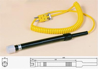 分度號(hào):K、E導(dǎo)線長(zhǎng)度:2000㎜手柄材質(zhì):電木/膠木使用溫度范圍: -50℃ ~ 500℃ 應(yīng)用:凡冷凍設(shè)備或產(chǎn)品的表面與外壁溫度等,皆可有效使用。A型測(cè)溫片為片狀,B型測(cè)溫片為網(wǎng)狀。A片較B片更為耐用,但B片的反應(yīng)速度較A片快一點(diǎn)。