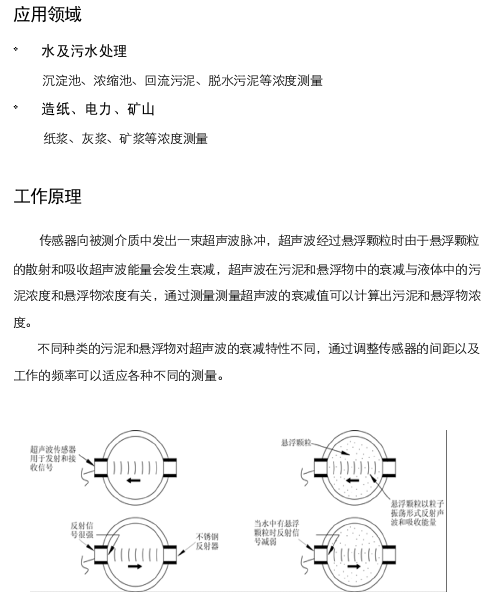 JKUSD型超聲波污泥濃度計是為市政污水、工業(yè)廢水、工業(yè)漿料等處理過程中的高濃度污泥和漿料濃度測量而設(shè)計的在線測量儀表?梢詫崟r在線監(jiān)測0.2%至60%的污泥和懸浮物濃度的變化并實現(xiàn)相關(guān)工藝過程自動控制。其超聲波測量方式比射線測量方式具有絕對的安全性,應而廣泛應用于污水處理廠,給水、造紙、冶金、礦山等多個領(lǐng)域。