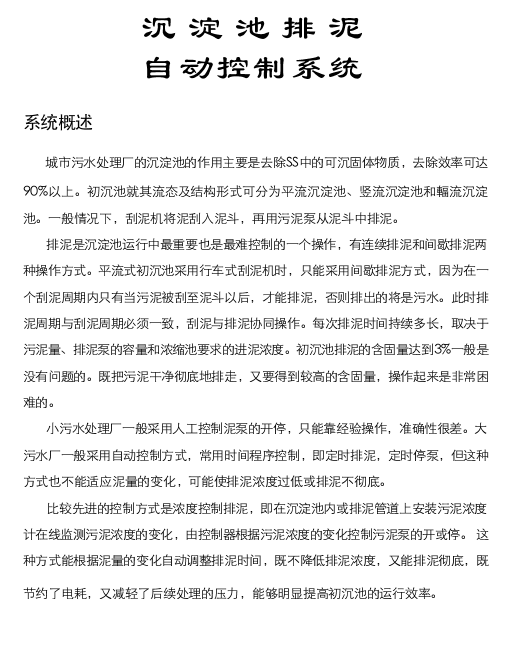 沉淀池排泥控制系統(tǒng)