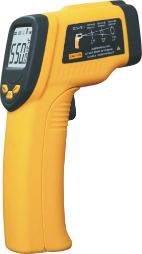 紅外線測溫儀AR802A一般功能和規(guī)格 AR-802A 測溫范圍 -18℃~550℃ 0~1022℉ 測溫精確度 ±2%or±2℃ 測量距離比率 8:1 發(fā)射率 0.95 解析度 0.1℃or0.1℉ 響應(yīng)時間和響應(yīng)值長 500ms & (8-14)um 重復(fù)性 供電 9V堿性電池 LCD尺寸 28.5*26.5mm 產(chǎn)品顏色 黃+黑 產(chǎn)品凈重 168g 產(chǎn)品尺寸 146*80*33mm 包 裝 包裝方式 彩盒包裝 標(biāo)準(zhǔn)外箱容量 40 標(biāo)準(zhǔn)外箱尺寸 67.0*51.0*24.0cm 標(biāo)準(zhǔn)外箱毛重 15.12kg Blister 40 55*37.5*25.5cm 10.55kg