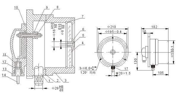 ■ 結(jié)構(gòu)原理: 儀表由隔爆外殼、測(cè)量系統(tǒng)、電接點(diǎn)組、調(diào)節(jié)裝置和出線(xiàn)盒等組成。 儀表的隔爆外殼具有良好的隔爆性能,因此對(duì)在正常工作過(guò)程中由于火花或電弧的影響,除了能承受殼體內(nèi)部的爆炸性氣體混合物在一旦引起爆炸時(shí)產(chǎn)生的爆炸壓力外,并能有效地阻止由此產(chǎn)生的熱能向外順利傳播,而只能在殼體內(nèi)部沿著隔爆接合面的微小縫隙處緩慢地向外擴(kuò)散。這時(shí),傳至殼體外部的瞬間溫度已降低到爆炸性氣體混合物的燃點(diǎn)溫度以下,故不會(huì)導(dǎo)致傳爆。 儀表的工作原理是基于檢測(cè)元件(測(cè)量系統(tǒng)中的彈簧管)的彈性變形,通過(guò)機(jī)械傳動(dòng)使之帶動(dòng)電接點(diǎn)組中的觸頭產(chǎn)生相應(yīng)的動(dòng)作(閉合或斷開(kāi))以使控壓系統(tǒng)中的電路得以接通或斷開(kāi),從而實(shí)現(xiàn)自動(dòng)控制報(bào)警和現(xiàn)場(chǎng)指示的目的。