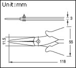 1PK-396E, 不銹鋼紅心無(wú)牙圓嘴鉗 [精密剪鉗類]. 全長(zhǎng): 118mm. 前端無(wú)牙圓嘴, 適合彎曲作業(yè)不傷表面