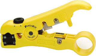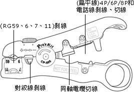 CP-505, 多功能剝線器 [剝線鉗類(lèi)]產(chǎn)品特點(diǎn):. 剝線范圍:同軸電纜RG-59, RG-6, RG-7, RG-11, 4P/6P/8P扁平線及對(duì)絞線. 重量:74 g. 總長(zhǎng):125±1mm(4.9"). 顏色:黃色. 材質(zhì):ABS. 刀片材質(zhì):SK-5