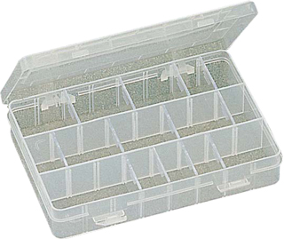 203-132E, 24格活動耐摔零件盒-彩標(biāo)收縮 [零件盒及實驗盒類]‧ 材質(zhì):P.P.‧ 附12片活動格板‧ 可選擇隔板:503-132E-D12(12片/包)