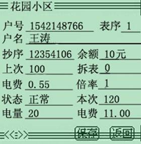 3.智能化:本次讀數(shù)輸入完畢后,機器能瞬時自動計算出電量,電費,并能準確的自動翻頁到下一戶,可以自動統(tǒng)計電量,電費。