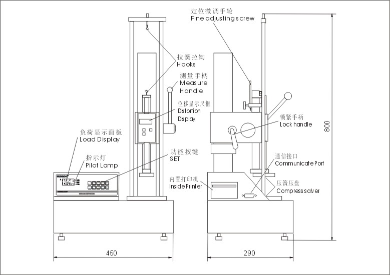 SD-1000電子數(shù)顯彈簧拉壓試驗機是測試拉伸、 壓縮彈簧的變形量和負荷關(guān)系特性的專用儀器。適用拉伸、壓縮彈簧在一定工作長度下的工作負荷的測試,也可用于橡膠、簧片等彈性器件的彈力負荷測試。具有高精度高分辨率;測試方向顯示;藍色背光燈顯示;上下限偏差值設(shè)定判斷,紅綠指示燈及蜂嗚器自動聲光報警設(shè)置;可存儲10組測試數(shù)據(jù),自動計算存儲數(shù)據(jù)的平均值;三種單位N、kgf、lbf自動互換;具有峰值保持功能、峰值自動解除功能及解除時間自由設(shè)定;無操作自動關(guān)機的省電設(shè)計,關(guān)機時間自由設(shè)定;串口(RS-232C)輸出,可打印10組存儲的測試數(shù)據(jù)和最大值、最小值、平均值、合格或不合格值判斷等優(yōu)點。