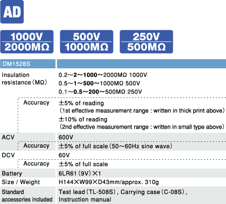 1000V/2000MΩ,5000V/1000MΩ,250V/500MΩ