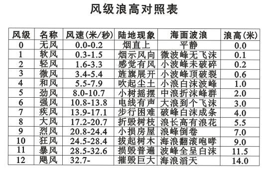 風(fēng)級:蒲氏風(fēng)級