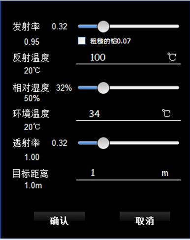 測(cè)溫修正發(fā)射率、反射溫度、相對(duì)濕度、環(huán)境溫度、透射率、目標(biāo)距離