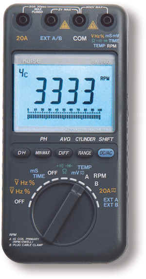 數(shù)字、模擬雙重顯示!汽車專用、轉(zhuǎn)速、閉合角、頻率、占空比、脈沖幅度、溫度測量等多種測量功能 |