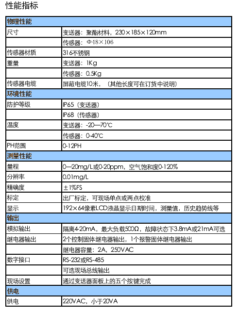 JKLDO型熒光法溶解氧測(cè)量?jī)x性能特點(diǎn): | ||