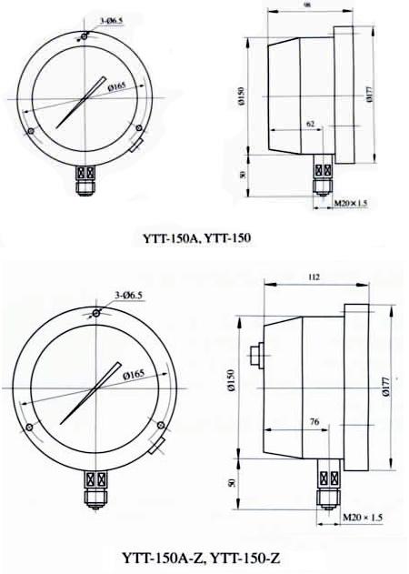 YTT-150型差動遠(yuǎn)傳壓力表是二線制本質(zhì)安全型防爆儀表,用于測量對銅及其合金不起腐蝕作用的液體、氣體和蒸汽的壓力。儀表帶上阻尼器后,可測量脈動、沖擊、突然卸荷介質(zhì)的壓力。帶上隔膜部分后,可測量大粘度、有腐蝕性介質(zhì)的壓力。本儀表除就地進(jìn)行壓力指示外,還連續(xù)輸出與被測壓力信號成線性的4~20mA直流信號?梢耘cDDZ-Ⅲ電動單元組合儀表中的顯示、記載、調(diào)節(jié)儀表聯(lián)用,組成自動記錄、調(diào)節(jié)、控制等系統(tǒng)。適用于石油化工、冶金、電站、輕工業(yè)等部門使用。