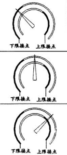 1、控制片皆處于感應(yīng)開關(guān)內(nèi)。 2、指示針上行(或下行)時(shí),上限接點(diǎn)(下限接點(diǎn))的控制片退出感應(yīng)開關(guān)。 |
