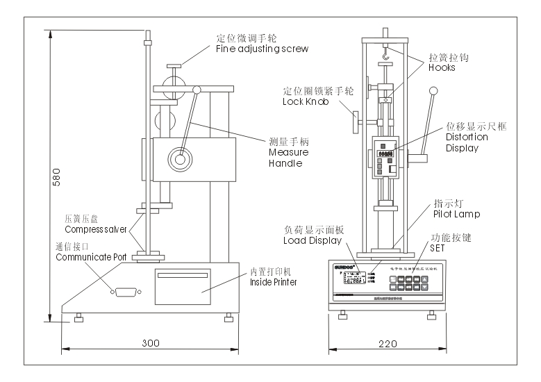 SD-100電子數(shù)顯彈簧拉壓試驗機是測試?yán)臁?壓縮彈簧的變形量和負(fù)荷關(guān)系特性的專用儀器。適用拉伸、壓縮彈簧在一定工作長度下的工作負(fù)荷的測試,也可用于橡膠、簧片等彈性器件的彈力負(fù)荷測試。具有高精度高分辨率;測試方向顯示;藍(lán)色背光燈顯示;上下限偏差值設(shè)定判斷,紅綠指示燈及蜂嗚器自動聲光報警設(shè)置;可存儲10組測試數(shù)據(jù),自動計算存儲數(shù)據(jù)的平均值;三種單位N、kgf、lbf自動互換;具有峰值保持功能、峰值自動解除功能及解除時間自由設(shè)定;無操作自動關(guān)機的省電設(shè)計,關(guān)機時間自由設(shè)定;內(nèi)置打印機,可打印10組存儲的測試數(shù)據(jù)和最大值、最小值、平均值、合格或不合格值判斷等優(yōu)點。
