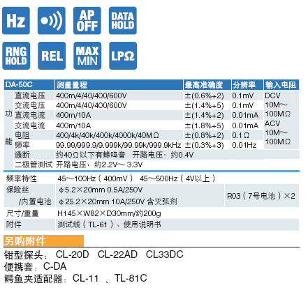 數(shù)字萬用表DA50C
