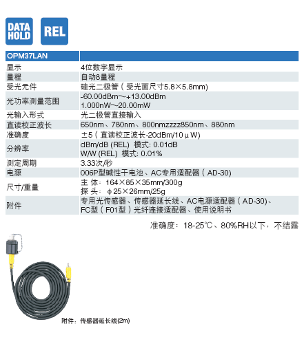 光纖專用光電功率表(短波長(zhǎng)5檔量程)FC型光纖連接器連線