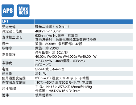 波長指定型號LP1-780(校正波長:780nm時)