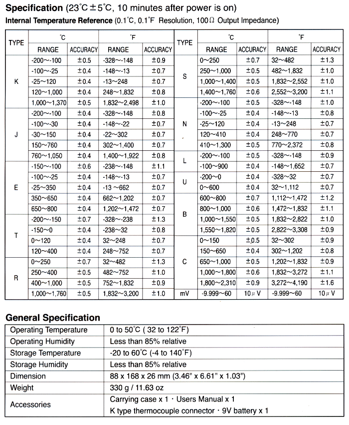 可校正11種溫度探棒(K.J.E.T.R.S.N.L.U.B.C type)